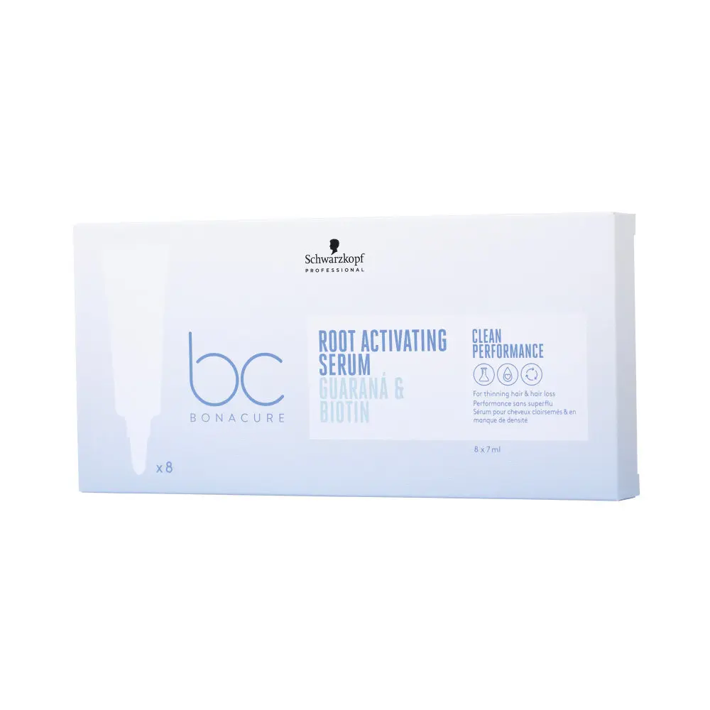 El Sérum Activador de Raíces de Bonacure, que ha sido aprobado dermatológicamente para cabello debilitado y con tendencia a caerse, reduce la caída del cabello no patológica* activando las raíces** y estimulando el cuero cabelludo, gracias a una mezcla única de compuestos dentro de su fórmula de rápida absorción, libre de*** y vegana**** con el Complejo Superfood. Enriquecido con Guaraná y Biotina, promueve el cuerpo del cabello mientras mejora su calidad y vitalidad. El cuero cabelludo se reequilibra y asegura el estado futuro del cabello. Adecuado para uso diario.